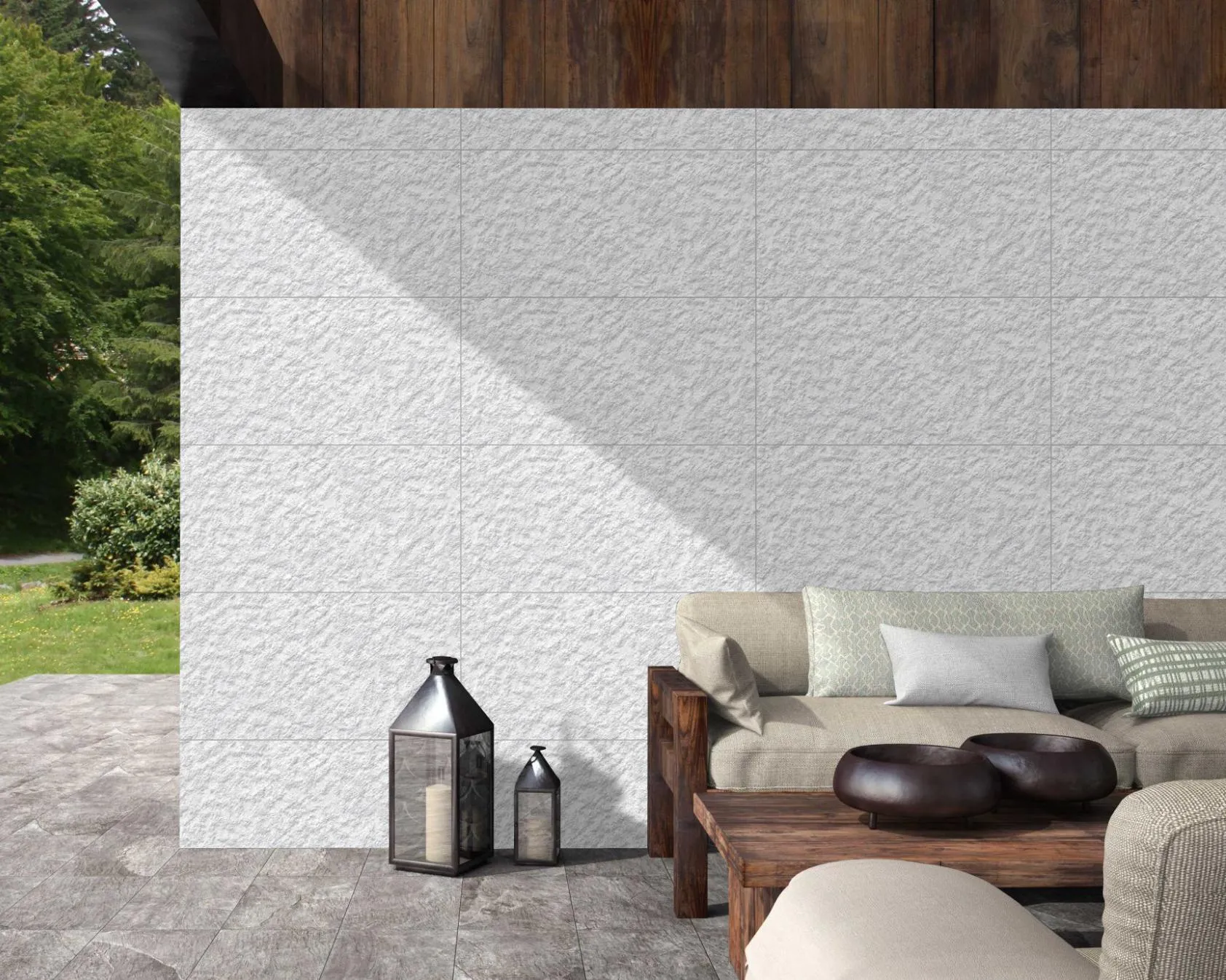Durable Arctic White 3D tiles, matt finish, frost proof. Perfect for outdoor walls, patios, gardens, and poolside spaces, combining modern style with long-lasting performance.